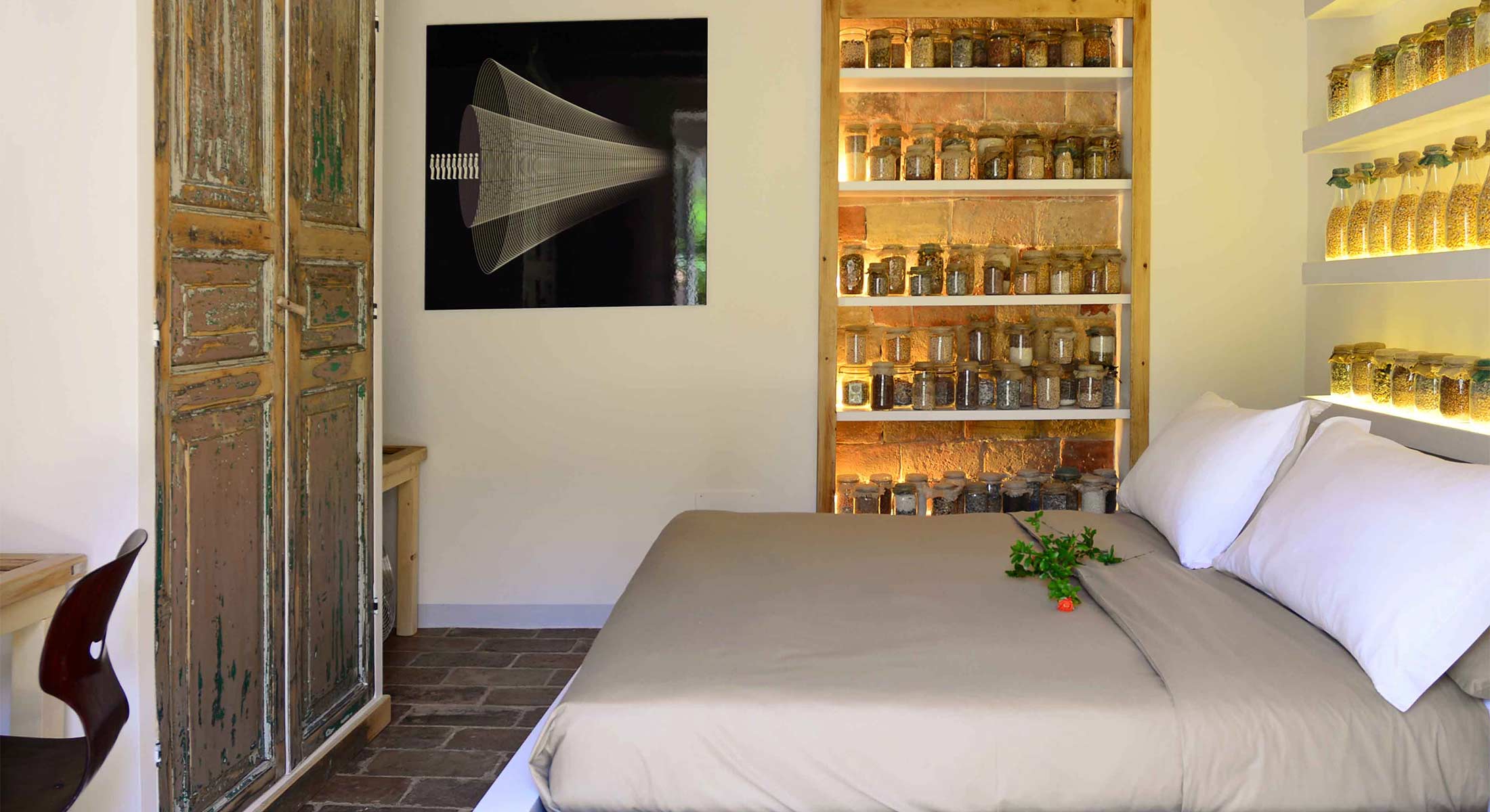 I semi nel Castello di Granarola celebrano la storia del luogo, un tempo deposito di granaglie. Questo spazio esclusivo, con i suoi semi preziosi racchiusi in ampolle di vetro come tesori, simboleggia il nucleo e l’essenza di ogni nuova vita.